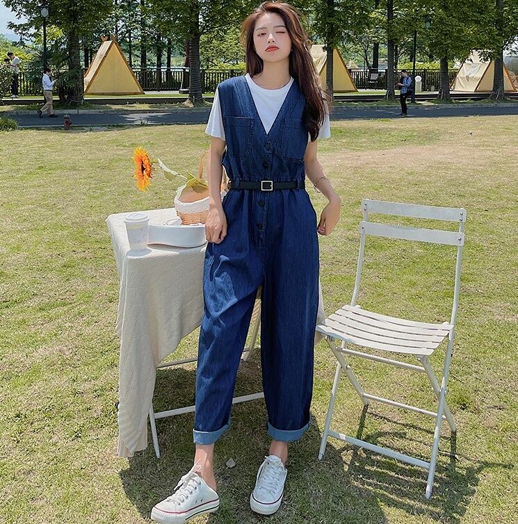 【送料無料】レディース サロペット オールインワン デニム ワイド ウエストマーク Vネック 大人可愛い ママコーデ ママファッション 韓国系 オルチャンファッション 人気 トレンド 新作 20代 30代 40代 きれいめ レトロ シンプル お出かけ デート おしゃれ 通勤 通学 オフィス OL デイリー 普段着 ラフ カジュアル フェミニン ゆったり 体型カバー 着痩せ 着回し インスタ映え 春 夏 秋 冬 CO3813