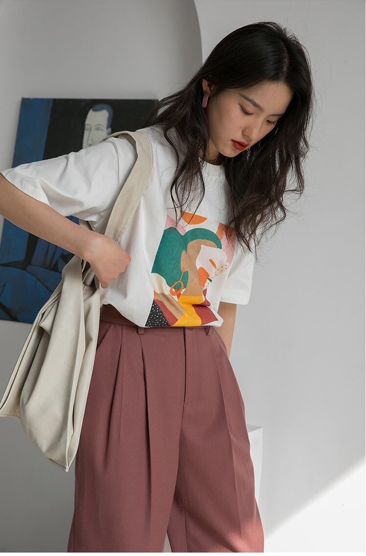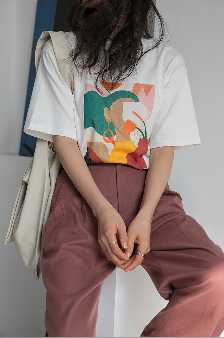 【送料無料】レディース 3カラー Tシャツ 半袖 アート プリント トップス 大人可愛い ママコーデ ママファッション 韓国系 オルチャンファッション 人気 トレンド 新作 20代 30代 40代 きれいめ レトロ シンプル お出かけ デート おしゃれ 通勤 通学 オフィス OL デイリー 普段着 ラフ カジュアル フェミニン シック ゆったり 体型カバー 着痩せ 着回し インスタ映え 春 夏 CO3815