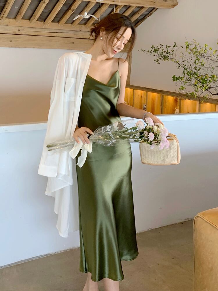 【送料無料】レディース 3カラー ワンピース キャミソールワンピース ロング丈 ミモレ丈 光沢感 大人可愛い ママコーデ ママファッション 韓国系 オルチャンファッション 人気 トレンド 新作 20代 30代 40代 きれいめ レトロ シンプル お出かけ デート おしゃれ 通勤 通学 オフィス OL デイリー カジュアル フェミニン シック ゆったり 体型カバー 着痩せ 着回し インスタ映え 春 夏 秋 冬 CO3821