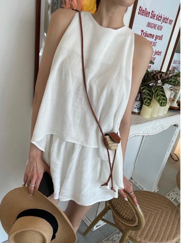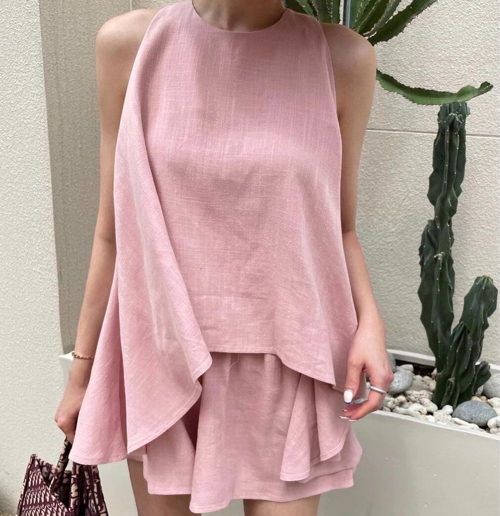 ふわりと揺れるシルエットが女性らしいセットアップ。