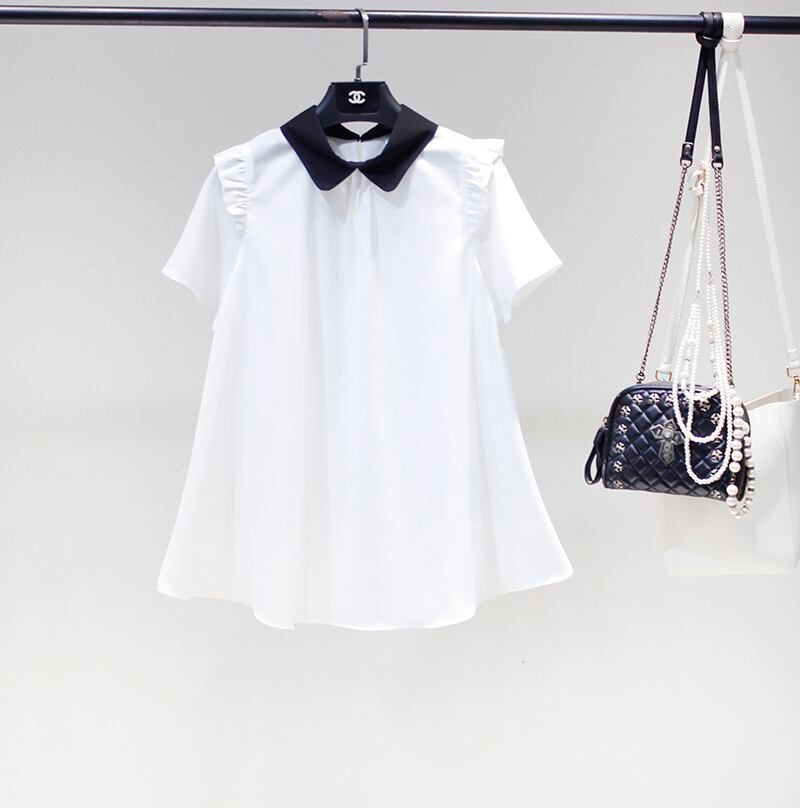 【送料無料】レディース 2カラー ブラウス シャツ プルオーバー バイカラー 半袖 丸襟 半袖 Aライン 肩フリル 大きいサイズ M~4XL 大人可愛い ママコーデ ママファッション 韓国系 オルチャンファッション 人気 トレンド 新作 20代 30代 40代 きれいめ レトロ シンプル お出かけ デート おしゃれ 通勤 通学 オフィス OL デイリー 普段着 ラフ カジュアル フェミニン シック ゆったり 体型カバー 着痩せ 着回し インスタ映え 春 夏 CO3841