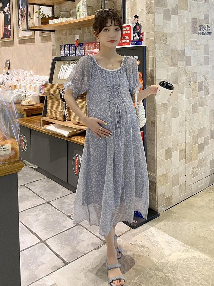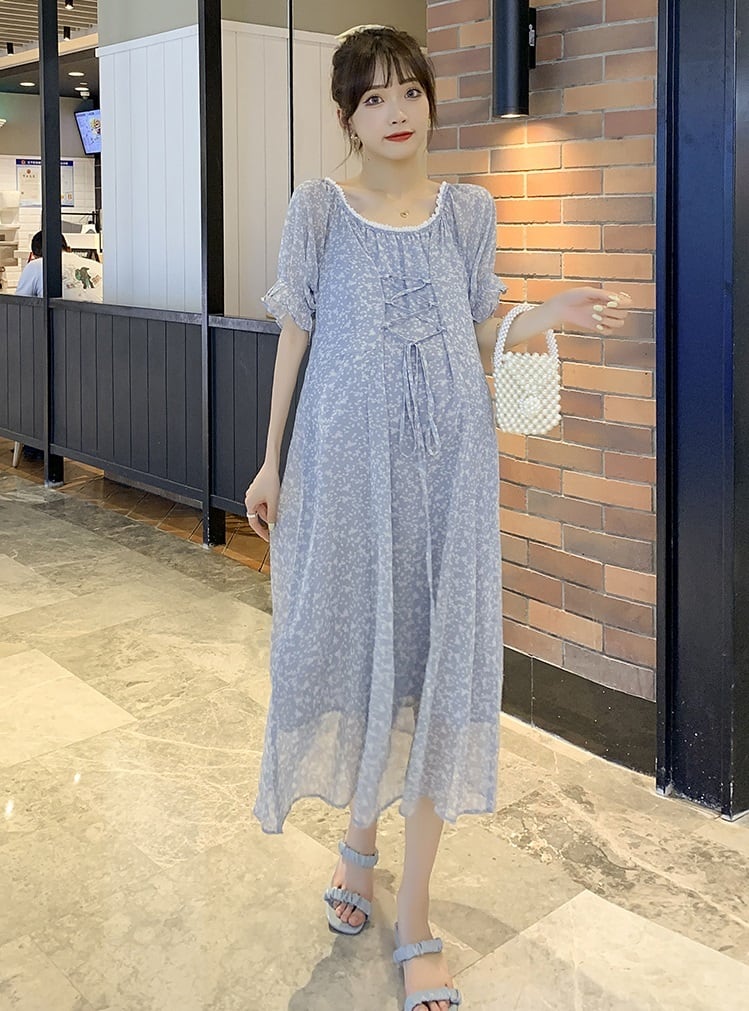 【日本未発売/送料無料】マタニティ ワンピース シフォン パフスリーブ レースアップ シアー 透け感 ロング レディース 可愛い ママコーデ ママファッション ママ服 マタニティウェア 人気 ゆったり 大きいサイズ デイリー 普段着 お出かけ おしゃれ シンプル 無地 きれいめ カジュアル フェミニン シック 体型カバー 着痩せ 着回し お宮参り マタニティフォト 通勤 妊婦服 産前 産後 春 夏 CO3607