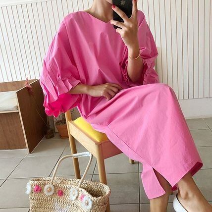 【送料無料】レディース 2カラー ワンピース ドルマン フリル ボリュームスリーブ サイドスリット ミモレ丈 大人可愛い ママコーデ ママファッション 韓国系 オルチャンファッション 人気 トレンド 新作 20代 30代 40代 きれいめ レトロ シンプル お出かけ デート おしゃれ 通勤 通学 オフィス OL デイリー 普段着 ラフ カジュアル フェミニン シック ゆったり 体型カバー 着痩せ 着回し インスタ映え 春 夏 CO3856