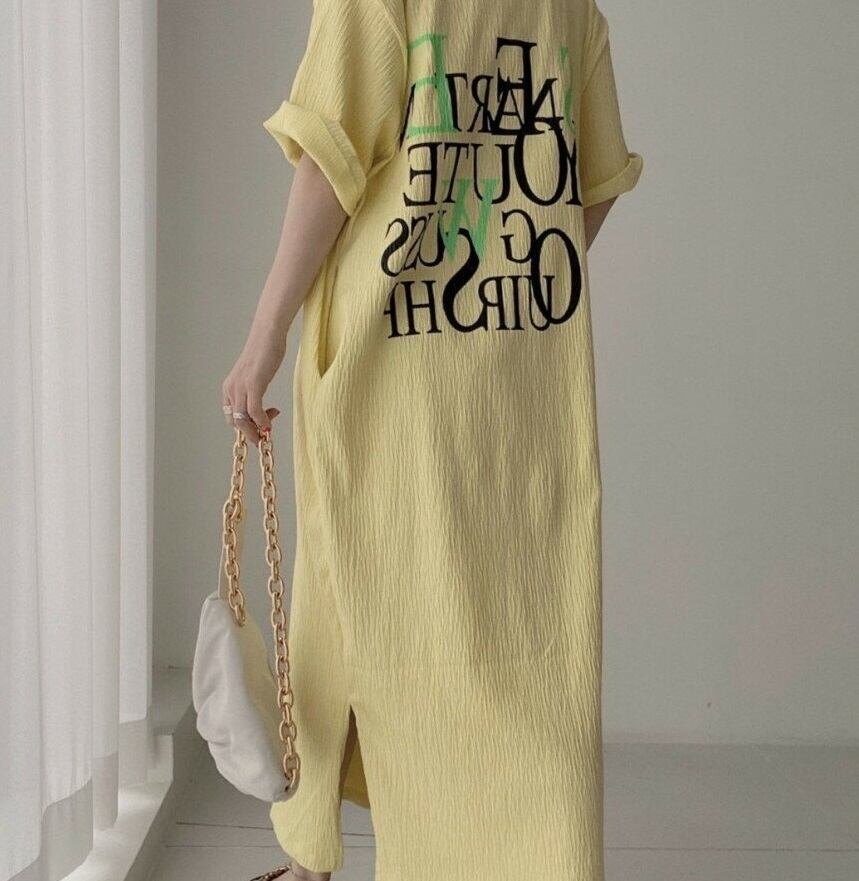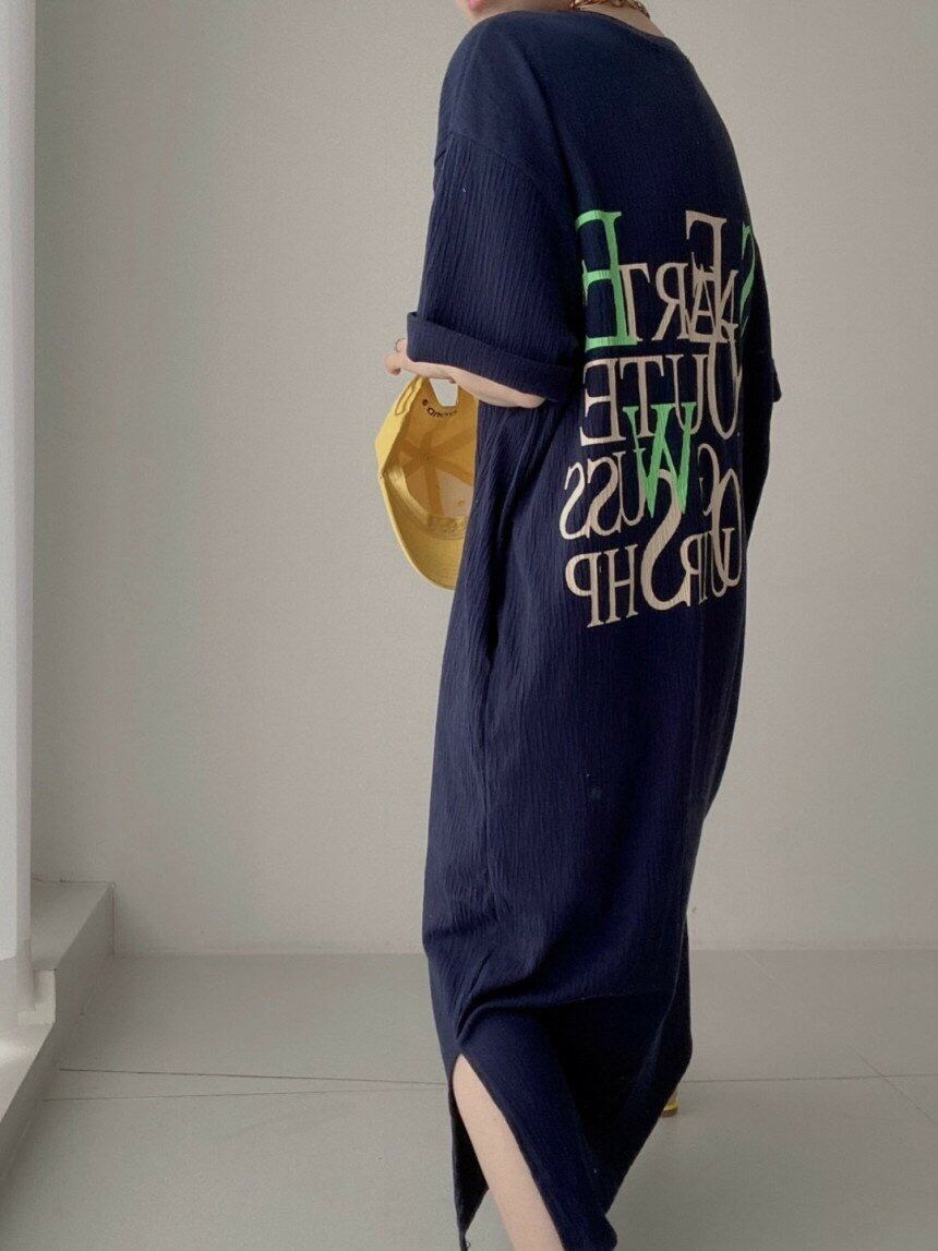 【送料無料】レディース 3カラー ワンピース 半袖 プリント ロゴ バックプリント 英字 アルファベット ロング丈 マキシ丈 サイドスリット 大人可愛い ママコーデ ママファッション 韓国系 オルチャンファッション 人気 トレンド 新作 20代 30代 40代 きれいめ レトロ シンプル お出かけ デート おしゃれ 通勤 通学 オフィス OL デイリー 普段着 ラフ カジュアル フェミニン シック ゆったり 体型カバー 着痩せ 着回し インスタ映え 春 夏 CO3858