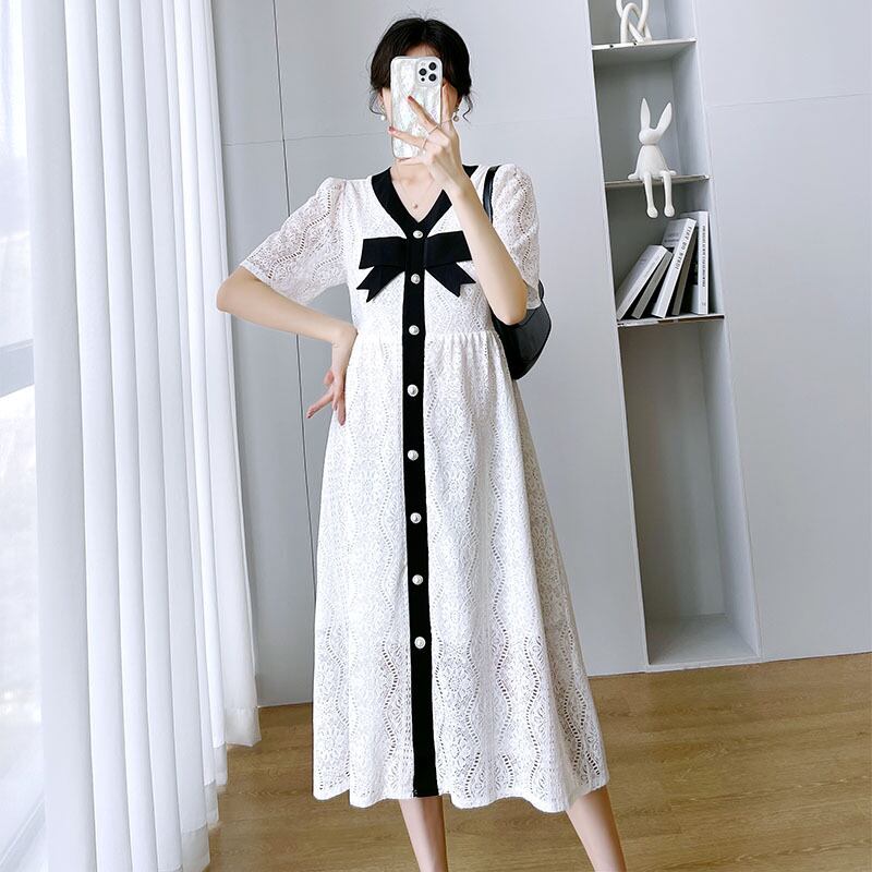 【日本未発売/送料無料】マタニティ ワンピース Vネック レース パンチングレース 半袖 リボン パール レディース 可愛い ママコーデ ママファッション ママ服 マタニティウェア 人気 ゆったり 大きいサイズ デイリー 普段着 お出かけ おしゃれ シンプル 無地 きれいめ カジュアル フェミニン シック 体型カバー 着痩せ 着回し お宮参り マタニティフォト 通勤 妊婦服 産前 産後 春 夏 CO3615