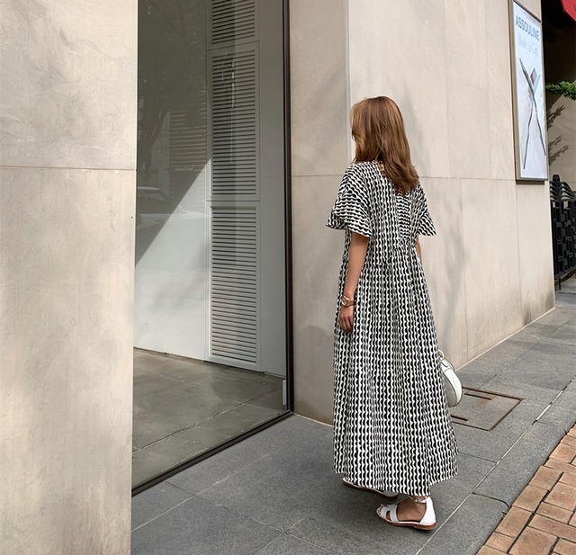 【送料無料】レディース 2カラー ワンピース ロングワンピース マキシワンピース 半袖 フリル袖 フレア 柄 大人可愛い ママコーデ ママファッション 韓国系 オルチャンファッション 人気 トレンド 新作 20代 30代 40代 きれいめ レトロ シンプル お出かけ デート おしゃれ 通勤 通学 オフィス OL デイリー 普段着 ラフ カジュアル フェミニン シック ゆったり 体型カバー 着痩せ 着回し インスタ映え 春 夏 CO3870