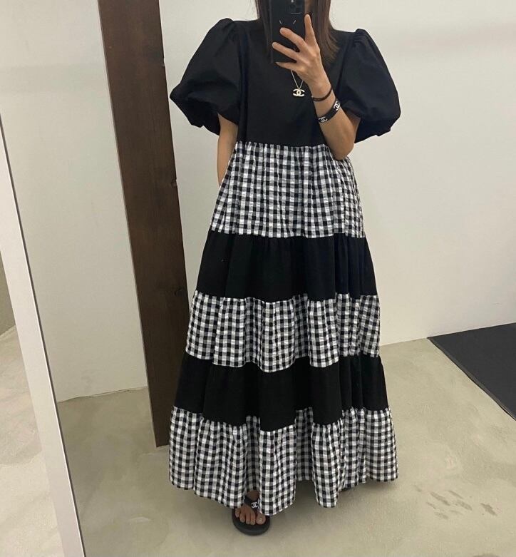 【送料無料】レディース 2カラー ワンピース ロング丈 マキシ丈 半袖 パフスリーブ ティアード フレア Aライン チェック柄 大人可愛い ママコーデ ママファッション 韓国系 オルチャンファッション 人気 トレンド 新作 20代 30代 40代 きれいめ レトロ シンプル お出かけ デート おしゃれ 通勤 通学 オフィス OL デイリー 普段着 ラフ カジュアル フェミニン シック ゆったり 体型カバー 着痩せ 着回し インスタ映え 春 夏 CO3895