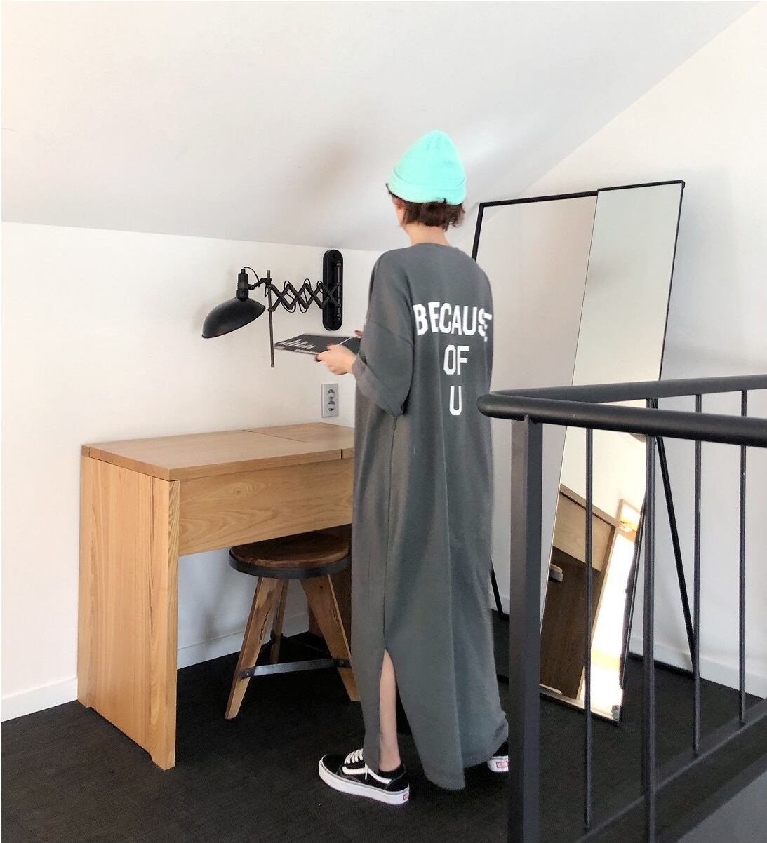 【送料無料】レディース 2カラー Tシャツワンピース マキシワンピース ロングワンピース サイドスリット ロゴ バックプリント オーバーサイズ 半袖 大人可愛い ママコーデ ママファッション 韓国系 オルチャンファッション 人気 トレンド 新作 20代 30代 40代 きれいめ レトロ シンプル お出かけ デート おしゃれ 通勤 通学 オフィス OL デイリー 普段着 ラフ カジュアル ゆったり 体型カバー 着痩せ 着回し インスタ映え 春 夏 CO3909