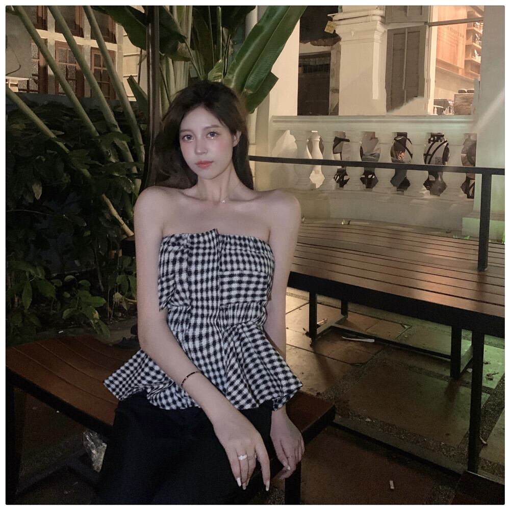 【送料無料】レディース チューブトップ ベアトップ ギンガムチェック ペプラム 裾フリル 大人可愛い ママコーデ ママファッション 韓国系 オルチャンファッション 人気 トレンド 新作 20代 30代 40代 きれいめ レトロ シンプル お出かけ デート おしゃれ 通勤 通学 オフィス OL デイリー 普段着 ラフ カジュアル フェミニン シック ゆったり 体型カバー 着痩せ 着回し インスタ映え 春 夏 CO3922