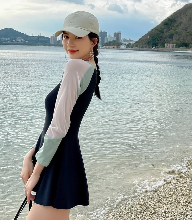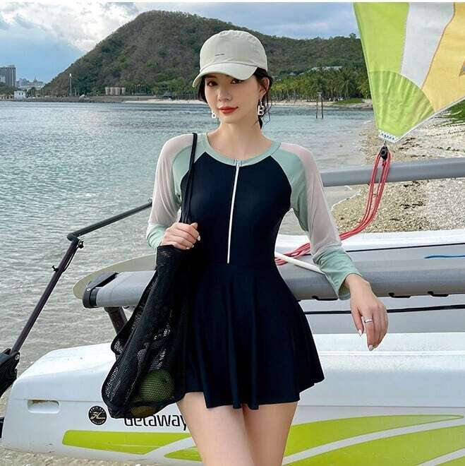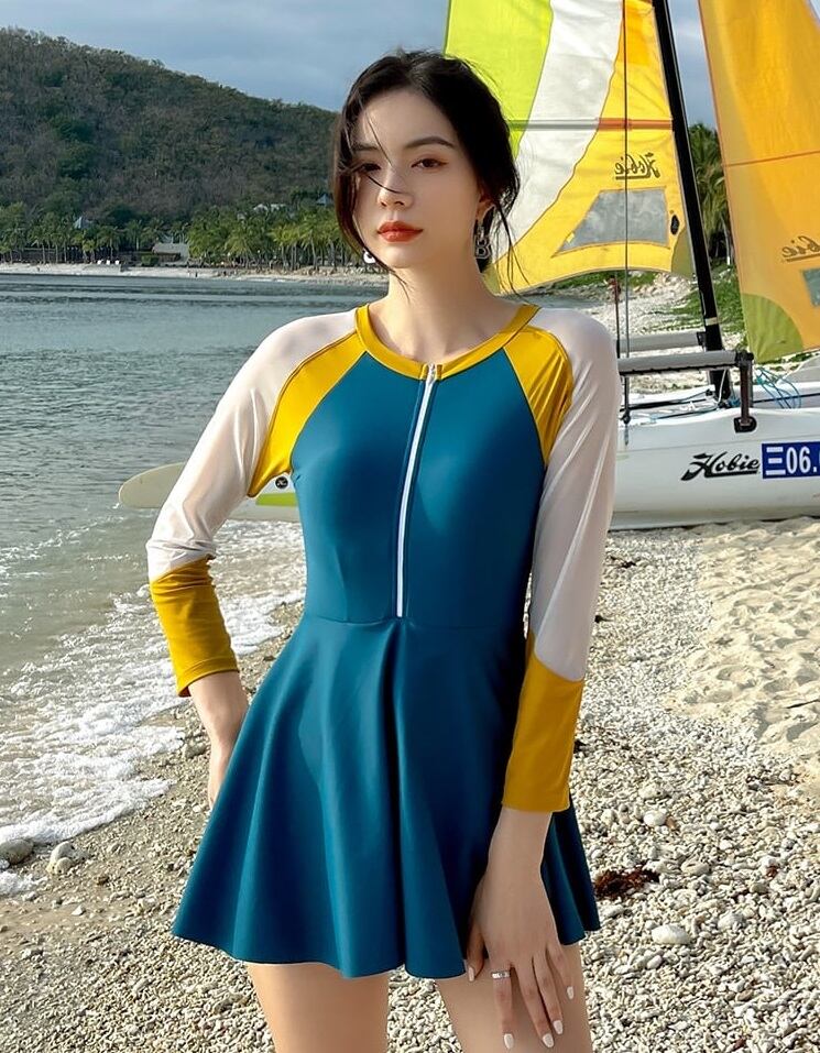 【送料無料】レディース 水着 ワンピース ラッシュガード付き ハーフジップ 長袖 スポーティー フレアスカート 大人可愛い ママコーデ ママファッション 韓国 オルチャンファッション 人気 トレンド 新作 20代 30代 40代 スイムウェア 体型カバー ハイウエスト 大きいサイズ 可愛い ぽっちゃり パレオ パッド付き 小胸 UVカット カジュアル フェミニン セクシー リゾート 旅行 海 プール ママ水着 海水浴 夏 CO3651