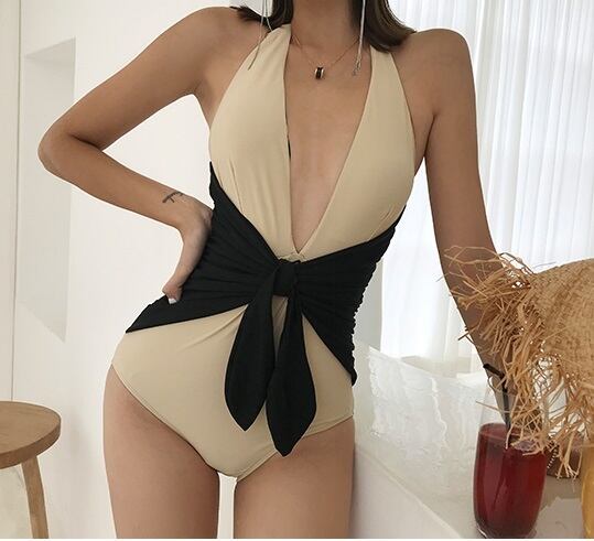 ♡バイカラーの深Vネックがセクシーなスイムウェア♡