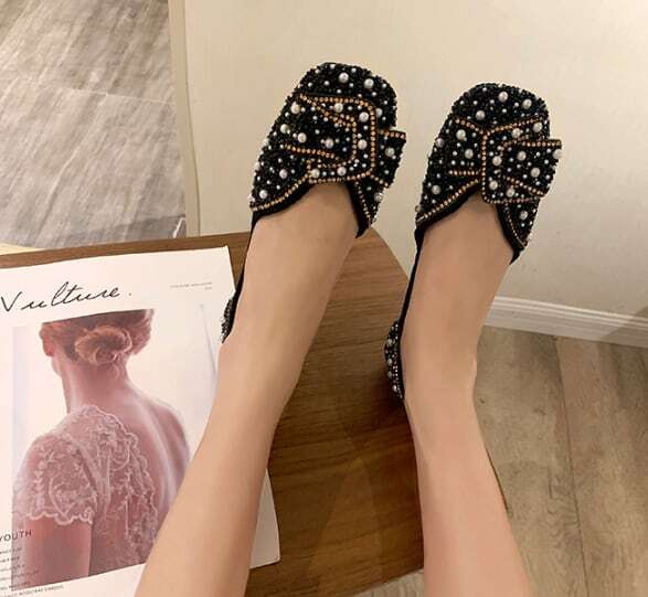【送料無料】レディース パンプス ローヒール ぺたんこ スクエアトゥ パール ラインストーン リボン レトロ キラキラ ビジュー 大人可愛い ママコーデ ママファッション 韓国 オルチャンファッション 人気 トレンド 新作 20代 30代 40代 シューズ 靴 きれいめ かわいい おしゃれ シック カジュアル お出かけ 高見え デート 旅行 歩きやすい 履きやすい エレガント ナチュラル 美脚 通気性 安定感 通勤 通学 デイリー 普段使い 秋 冬 春 夏 CO3690