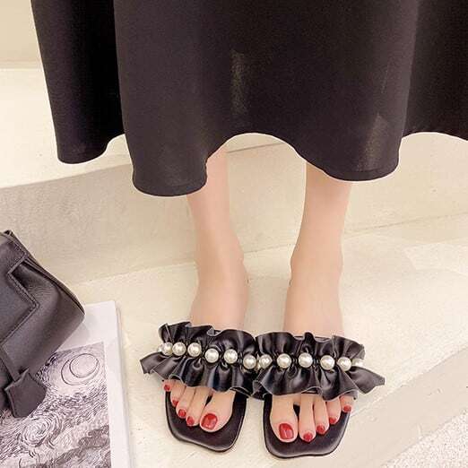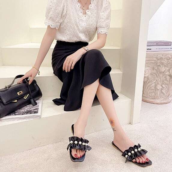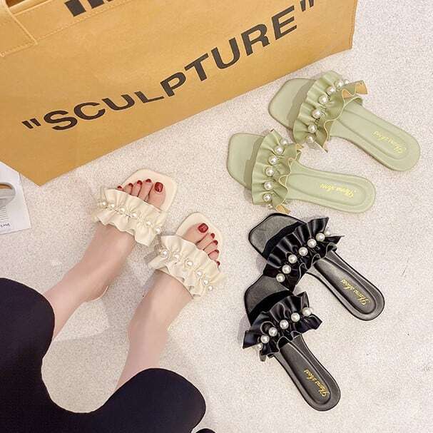 【送料無料】レディース パール フリル レザーフラットミュール サンダル 大人可愛い ママコーデ ママファッション 韓国 オルチャンファッション 人気 トレンド 新作 20代 30代 40代 シューズ 靴 きれいめ かわいい おしゃれ シック カジュアル お出かけ 高見え デート 旅行 歩きやすい 履きやすい エレガント ナチュラル 美脚 通気性 安定感 通勤 通学 デイリー 普段使い 秋 春 夏 CO3693