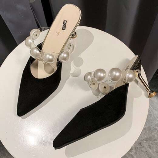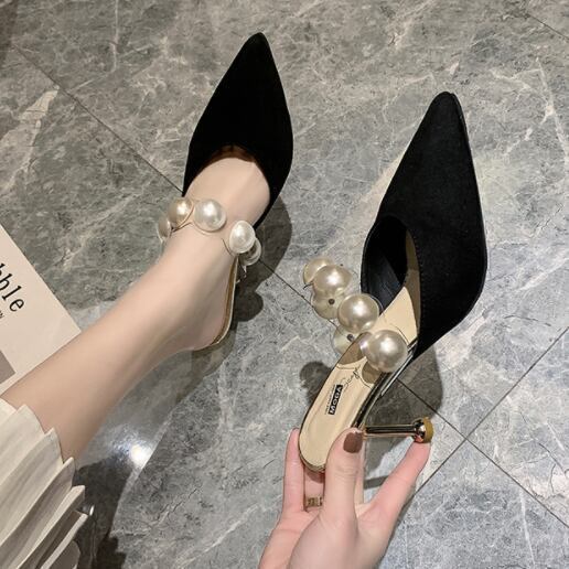 【送料無料】レディース サンダル ミュール パンプス ブラック パール ポインテッドトゥ 8cmヒール ハイヒール スエード 華やか 大人可愛い ママコーデ ママファッション 韓国 オルチャンファッション 人気 トレンド 新作 20代 30代 40代 シューズ 靴 きれいめ かわいい おしゃれ シック カジュアル お出かけ 高見え デート 旅行 歩きやすい 履きやすい エレガント ナチュラル 美脚 通気性 安定感 通勤 通学 デイリー 普段使い 秋 春 夏 CO3701