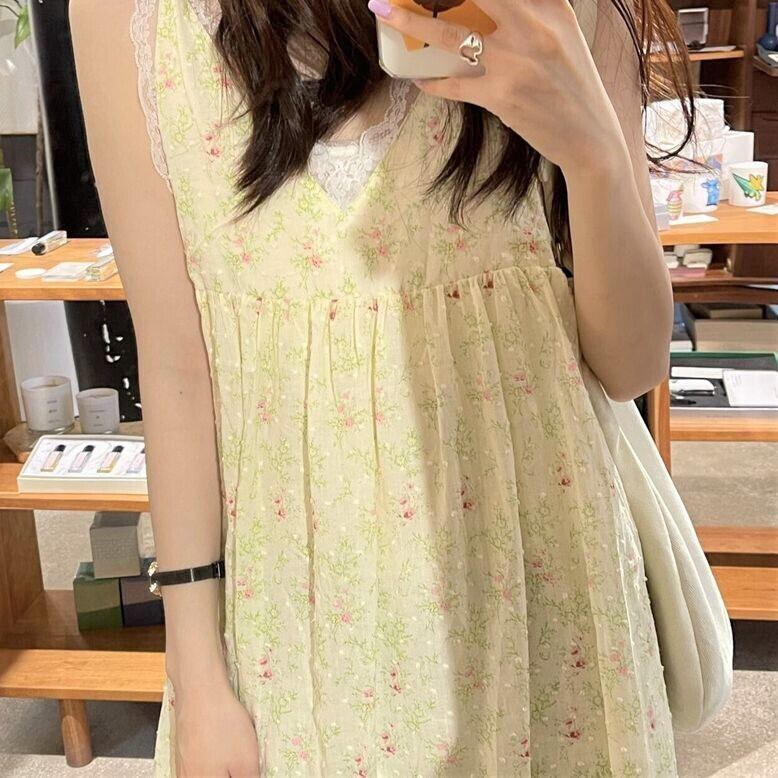 【送料無料】レディース パステルフラワー ワンピース ミモレ丈 小花柄 ノースリーブ レース Vネック Aライン 大人可愛い ママコーデ ママファッション 韓国 オルチャンファッション 人気 トレンド 新作 20代 30代 40代 きれいめ レトロ シンプル 無地 定番 お出かけ デート おしゃれ 通勤 通学 オフィス OL デイリー 普段着 ラフ カジュアル フェミニン シック ゆったり 体型カバー 着痩せ 着回し インスタ映え 秋 春 夏 CO3711