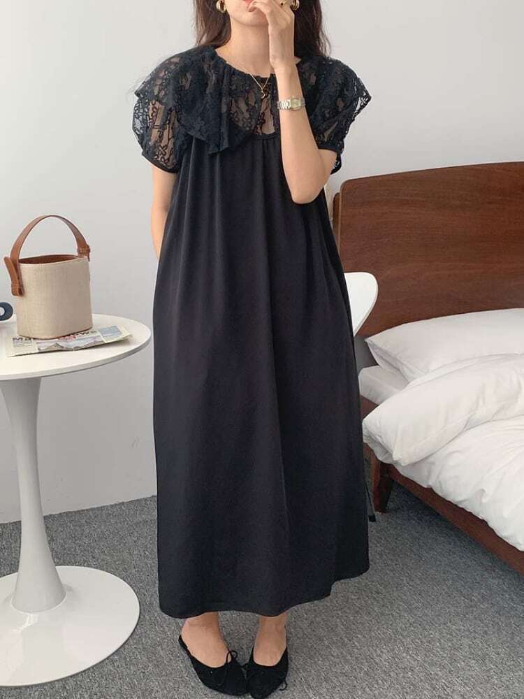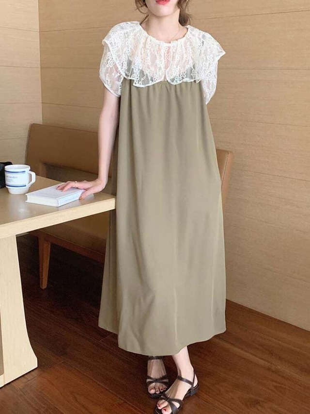 【送料無料】レディース セットアップ 2点セット レース カラー レイヤード ワンピース ラウンドネック パフスリーブ 大人可愛い ママコーデ ママファッション 韓国 オルチャンファッション 人気 トレンド 新作 20代 30代 40代 きれいめ レトロ シンプル 無地 定番 お出かけ デート おしゃれ 通勤 通学 オフィス OL デイリー 普段着 ラフ カジュアル フェミニン シック ゆったり 体型カバー 着痩せ 着回し インスタ映え 秋 春 夏 CO3713