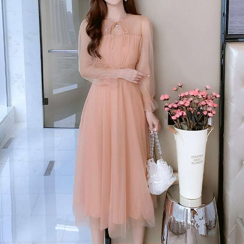 【送料無料】レディース ワンピース 可愛い 透け感 シースルー リボン 女子力UP 薄い ストラップカフス 長袖 綺麗 大人可愛い ママコーデ ママファッション 韓国 オルチャンファッション 人気 トレンド 新作 20代 30代 40代 きれいめ レトロ シンプル 無地 定番 お出かけ デート おしゃれ 通勤 通学 オフィス OL デイリー 普段着 ラフ カジュアル フェミニン シック ゆったり 体型カバー 着痩せ 着回し インスタ映え 秋 春 夏 CO3734