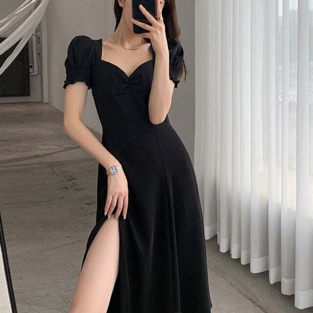 【送料無料】レディース ワンピース バブルスリーブ ハートネック スリット ロングドレス 大人可愛い ママコーデ ママファッション 韓国 オルチャンファッション 人気 トレンド 新作 20代 30代 40代 きれいめ レトロ シンプル 無地 定番 お出かけ デート おしゃれ 通勤 通学 オフィス OL デイリー 普段着 ラフ カジュアル フェミニン シック ゆったり 体型カバー 着痩せ 着回し インスタ映え 春 夏 CO3737