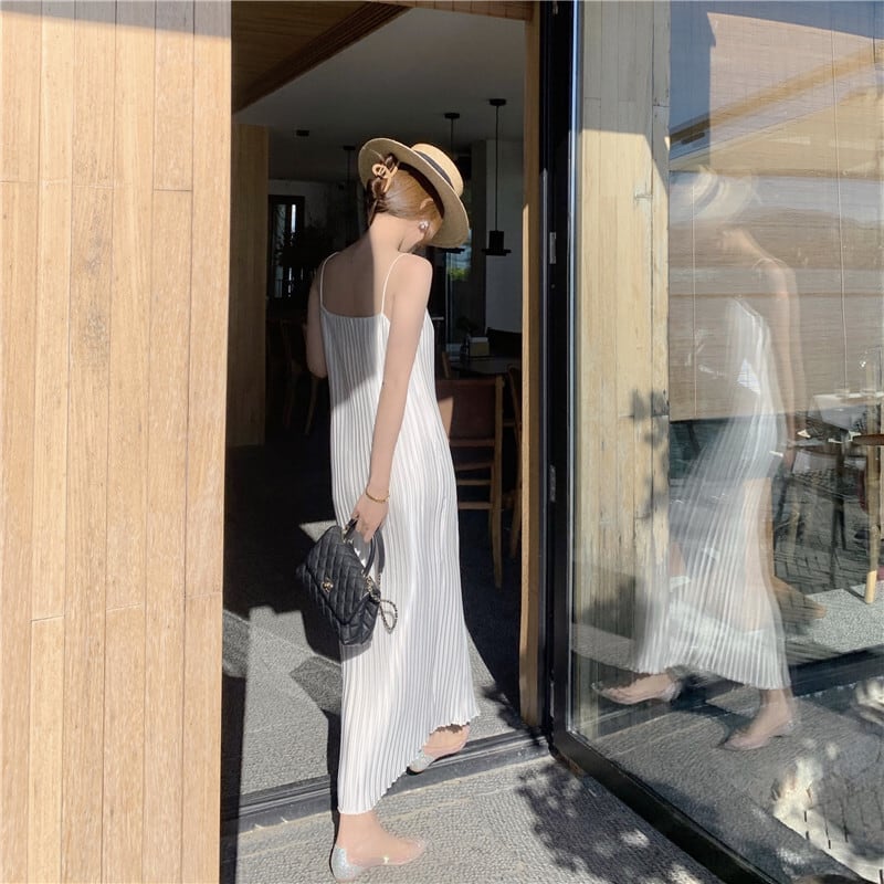 【送料無料】レディース サテン プリーツ キャミソール ワンピース ドレス ロング マキシ ノースリーブ 大人可愛い ママコーデ ママファッション 韓国 オルチャンファッション 人気 トレンド 新作 20代 30代 40代 きれいめ レトロ シンプル 無地 定番 お出かけ デート おしゃれ 通勤 通学 オフィス OL デイリー 普段着 ラフ カジュアル フェミニン シック ゆったり 体型カバー 着痩せ 着回し インスタ映え 春 夏 CO3745