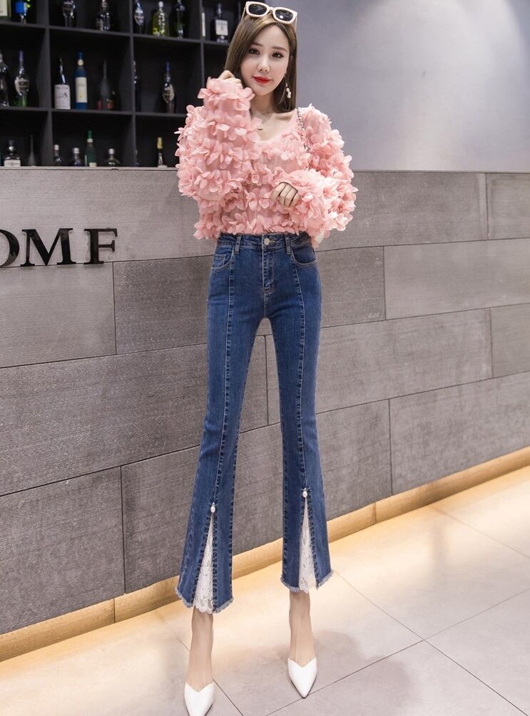 【送料無料】レディース デニムパンツ レース スリット パール パンツ ジーンズ 9分丈パンツ レース裾 大人可愛い ママコーデ ママファッション 韓国系 オルチャン 人気 トレンド 新作 20代 30代 40代 きれいめ レトロ シンプル お出かけ デート おしゃれ 通勤 通学 オフィス OL デイリー 普段着 ラフ カジュアル フェミニン シック ゆったり 体型カバー 着痩せ 着回し インスタ映え 春 夏 CO3937