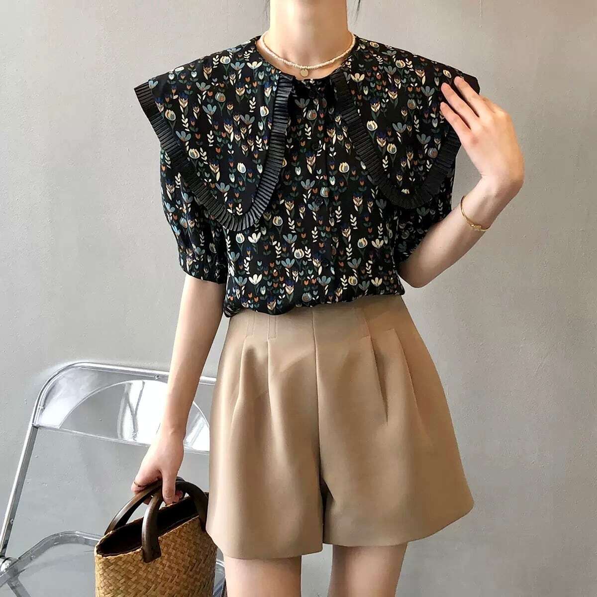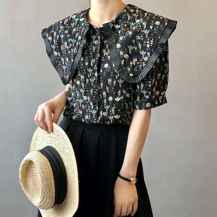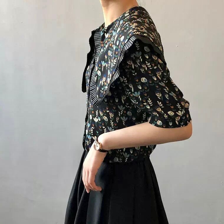 【送料無料】レディース ビッグカラー 花柄 半袖 ブラウス 花柄シャツ 大きめ襟 大人可愛い ママコーデ ママファッション 韓国系 オルチャン 人気 トレンド 新作 20代 30代 40代 きれいめ レトロ シンプル お出かけ デート おしゃれ 通勤 通学 オフィス OL デイリー 普段着 ラフ カジュアル フェミニン シック ゆったり 体型カバー 着痩せ 着回し インスタ映え 春 夏 CO3948