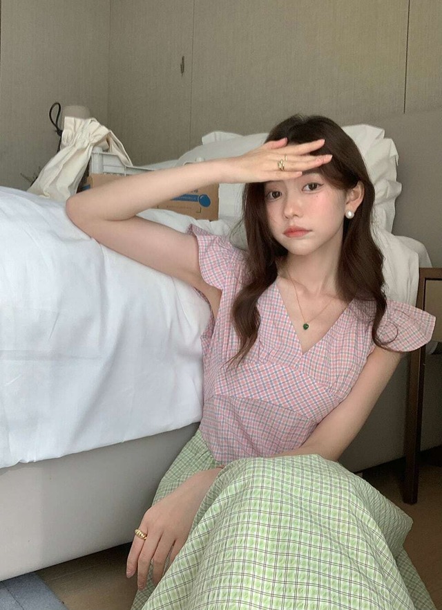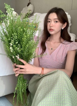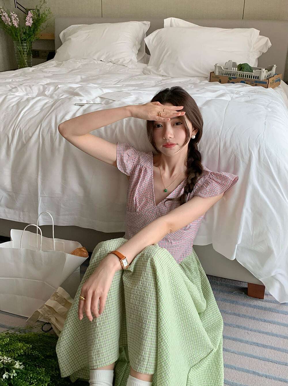 パステルカラーのチェック柄配色がレトロで可愛いワンピース。