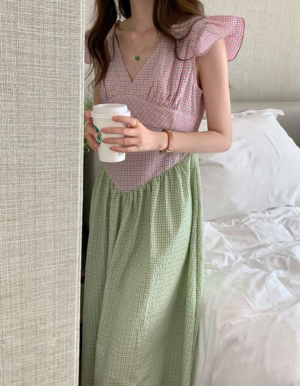 【送料無料】レディース チェック柄 配色 ノースリーブ ワンピース 2色 フリル袖 韓国 コットンワンピース 大人可愛い ママコーデ ママファッション 韓国系 オルチャン 人気 トレンド 新作 20代 30代 40代 きれいめ レトロ シンプル お出かけ デート おしゃれ 通勤 通学 オフィス OL デイリー 普段着 ラフ カジュアル フェミニン シック ゆったり 体型カバー 着痩せ 着回し インスタ映え 春 夏 CO3964