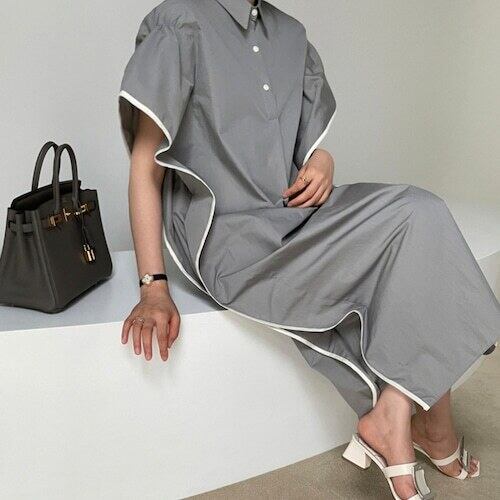 【送料無料】レディース パイピング シャツワンピース 半袖 ロングワンピース ハーフボタン ロング マキシ 大人可愛い ママコーデ ママファッション 韓国系 オルチャン 人気 トレンド 新作 20代 30代 40代 きれいめ レトロ シンプル お出かけ デート おしゃれ 通勤 通学 オフィス OL デイリー 普段着 ラフ カジュアル フェミニン シック ゆったり 体型カバー 着痩せ 着回し インスタ映え 春 夏 CO3967