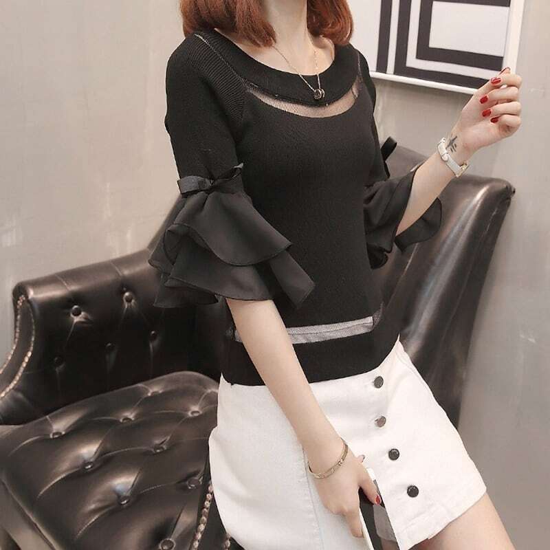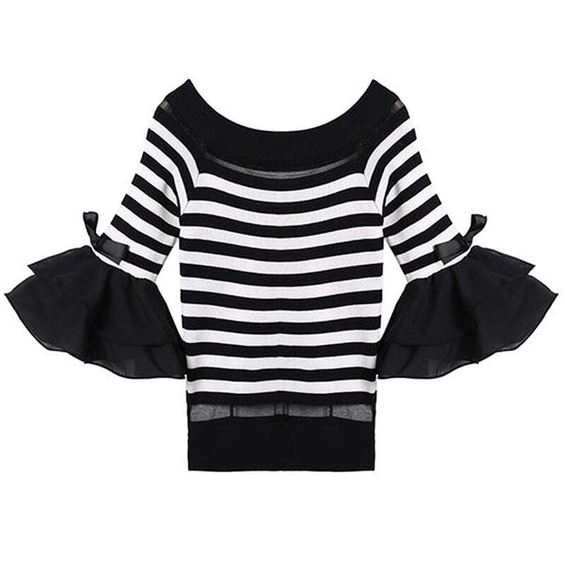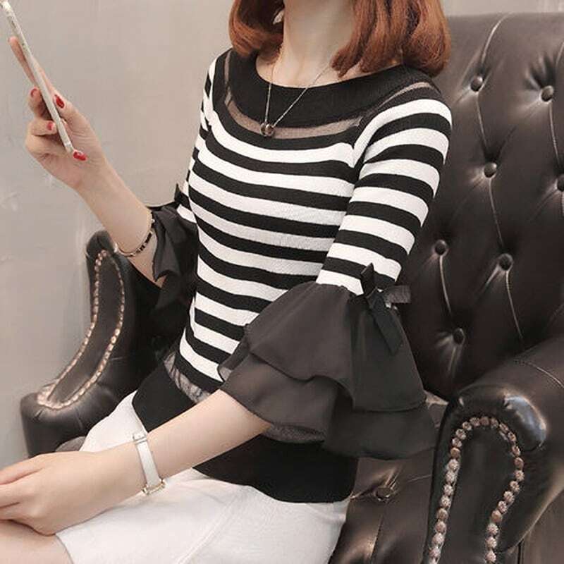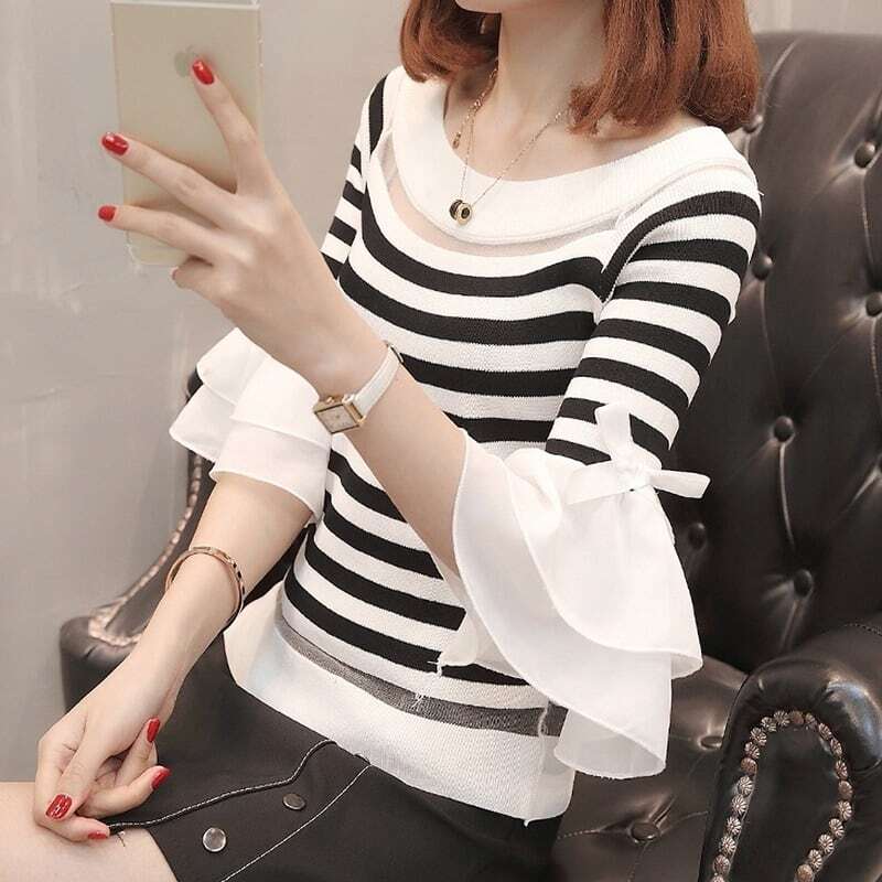 【送料無料】レディース アイスシルク ベルスリーブニット シースルー 透け感 ボーダー バイカラー リボン 大人可愛い ママコーデ ママファッション 韓国系 オルチャン 人気 トレンド 新作 20代 30代 40代 きれいめ レトロ シンプル お出かけ デート おしゃれ 通勤 通学 オフィス OL デイリー 普段着 ラフ カジュアル フェミニン シック ゆったり 体型カバー 着痩せ 着回し インスタ映え 春 夏 CO3970