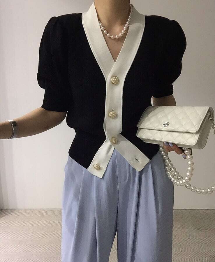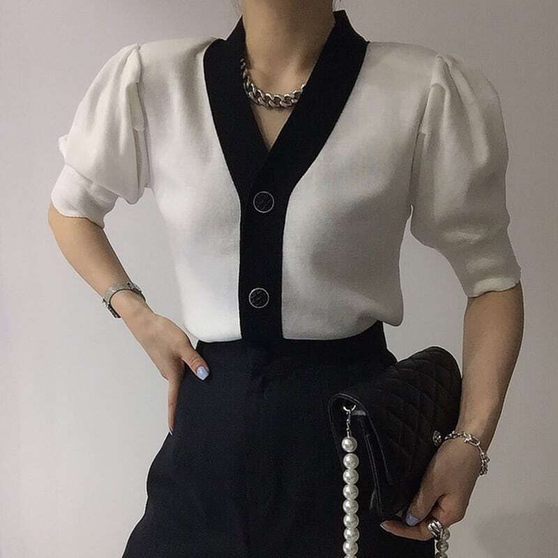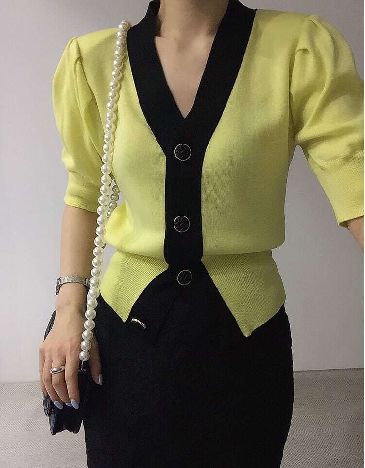 【送料無料】レディース カーディガン アウター Vネック バイカラー パフスリーブ 大人可愛い ママコーデ ママファッション 韓国系 オルチャン 人気 トレンド 新作 20代 30代 40代 きれいめ レトロ シンプル お出かけ デート おしゃれ 通勤 通学 オフィス OL デイリー 普段着 ラフ カジュアル フェミニン シック ゆったり 体型カバー 着痩せ 着回し インスタ映え 春 夏 CO3972