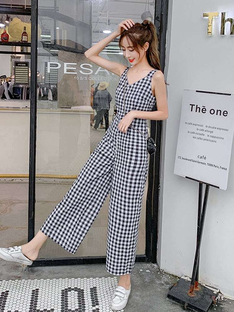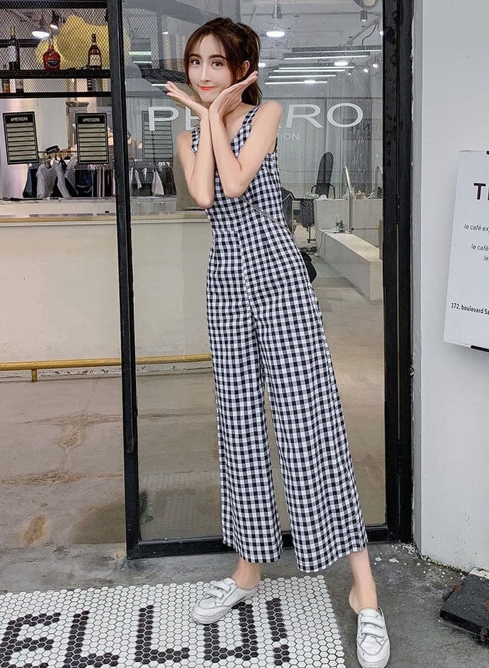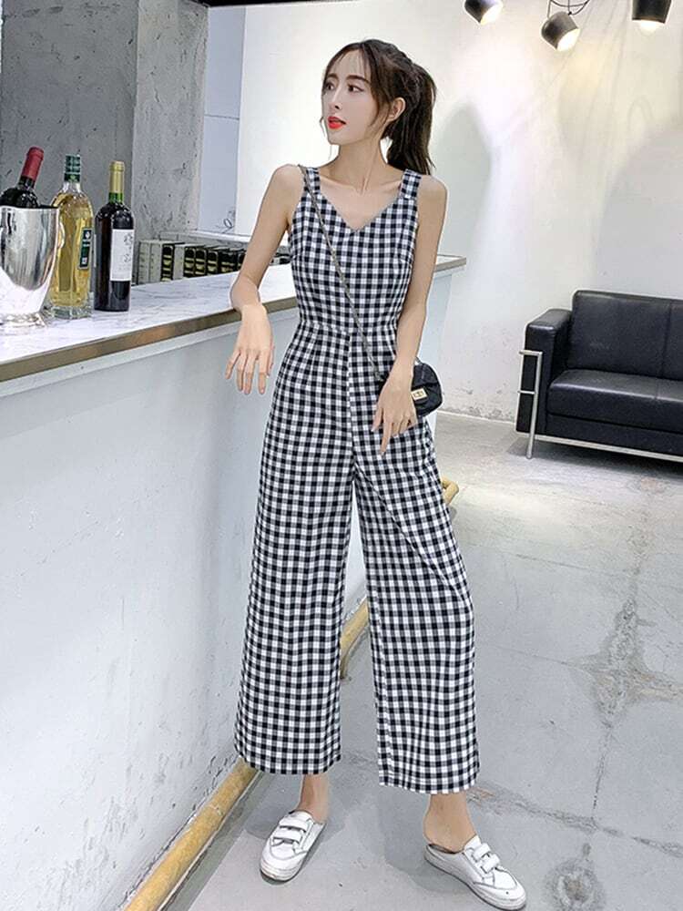 【送料無料】レディース オールインワン サロペット ロンパース ギンガムチェック ノースリーブ ハイウェスト ワイドパンツ 大人可愛い ママコーデ ママファッション 韓国系 オルチャン 人気 トレンド 新作 20代 30代 40代 きれいめ レトロ シンプル お出かけ デート おしゃれ 通勤 通学 オフィス OL デイリー 普段着 ラフ カジュアル フェミニン シック ゆったり 体型カバー 着痩せ 着回し インスタ映え 春 夏 CO3977