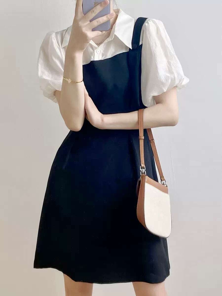 【送料無料】レディース フェイクレイヤード アシンメトリーワンピース ドッキングワンピース ボリュウームスリーブ バイカラー 大人可愛い ママコーデ ママファッション 韓国系 オルチャン 人気 トレンド 新作 20代 30代 40代 きれいめ レトロ シンプル お出かけ デート おしゃれ 通勤 通学 オフィス OL デイリー 普段着 ラフ カジュアル フェミニン シック ゆったり 体型カバー 着痩せ 着回し インスタ映え 春 夏 CO3979