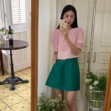 【送料無料】レディース レーストリム ジャケット ラウンドネック パフスリーブ ショート丈 大人可愛い ママコーデ ママファッション 韓国系 オルチャン 人気 トレンド 新作 20代 30代 40代 きれいめ レトロ シンプル お出かけ デート おしゃれ 通勤 通学 オフィス OL デイリー 普段着 ラフ カジュアル フェミニン シック ゆったり 体型カバー 着痩せ 着回し インスタ映え 春 夏 CO3983