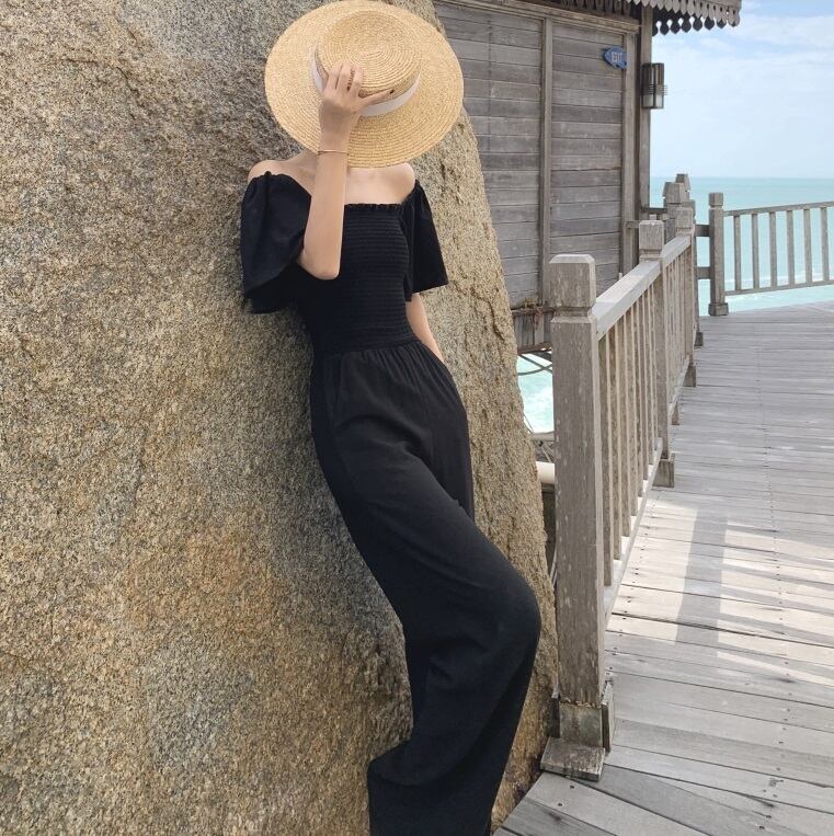 【送料無料】レディース ハイウエスト 2way オフショル オールインワン シャーリング フレア ブラック 大人可愛い ママコーデ ママファッション 韓国系 オルチャン 人気 トレンド 新作 20代 30代 40代 きれいめ レトロ シンプル お出かけ デート おしゃれ 通勤 通学 オフィス OL デイリー 普段着 ラフ カジュアル フェミニン シック ゆったり 体型カバー 着痩せ 着回し インスタ映え 春 夏 CO3993