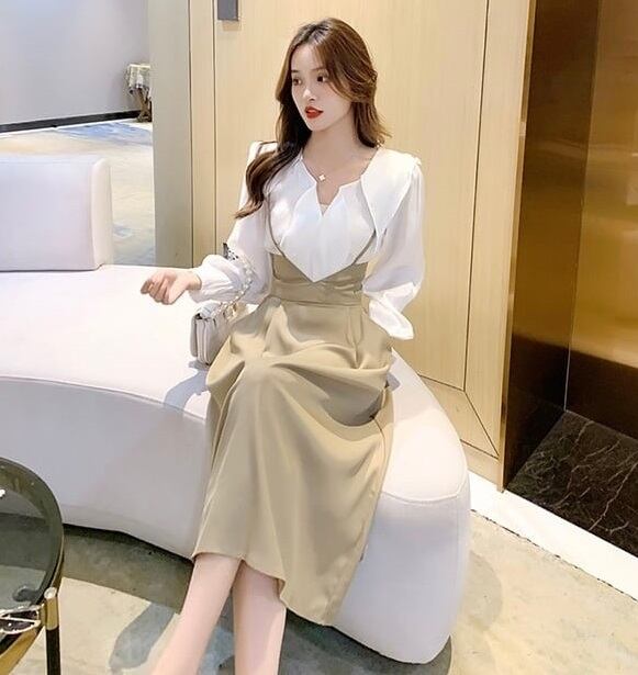 【送料無料】レディース セットアップ ブラウス+サスペンダースカート ハイウエスト 長袖 大人可愛い ママコーデ ママファッション 韓国系 オルチャン 人気 トレンド 新作 20代 30代 40代 きれいめ レトロ シンプル お出かけ デート おしゃれ 通勤 通学 オフィス OL デイリー 普段着 ラフ カジュアル フェミニン シック ゆったり 体型カバー 着痩せ 着回し インスタ映え 春 夏 CO4029