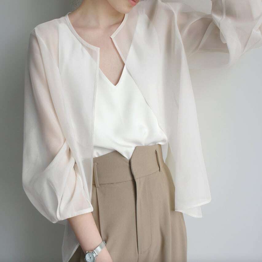 【送料無料】レディース シアー カーディガン 2color ボリュームスリーブ 無地 大人可愛い ママコーデ ママファッション 韓国系 オルチャン 人気 トレンド 新作 20代 30代 40代 きれいめ レトロ シンプル お出かけ デート おしゃれ 通勤 通学 オフィス OL デイリー 普段着 ラフ カジュアル フェミニン シック ゆったり 体型カバー 着痩せ 着回し インスタ映え 春 夏 CO4043