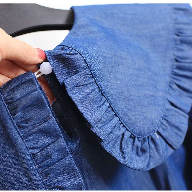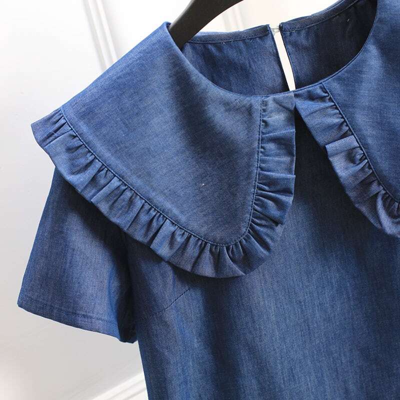 【送料無料】レディース フリル カラー デニム ブラウス 半袖 大き襟 大人可愛い ママコーデ ママファッション 韓国系 オルチャン 人気 トレンド 新作 20代 30代 40代 きれいめ レトロ シンプル お出かけ デート おしゃれ 通勤 通学 オフィス OL デイリー 普段着 ラフ カジュアル フェミニン シック ゆったり 体型カバー 着痩せ 着回し インスタ映え 春 夏 CO4057