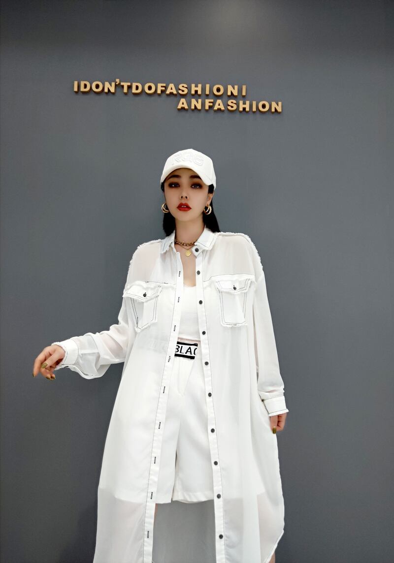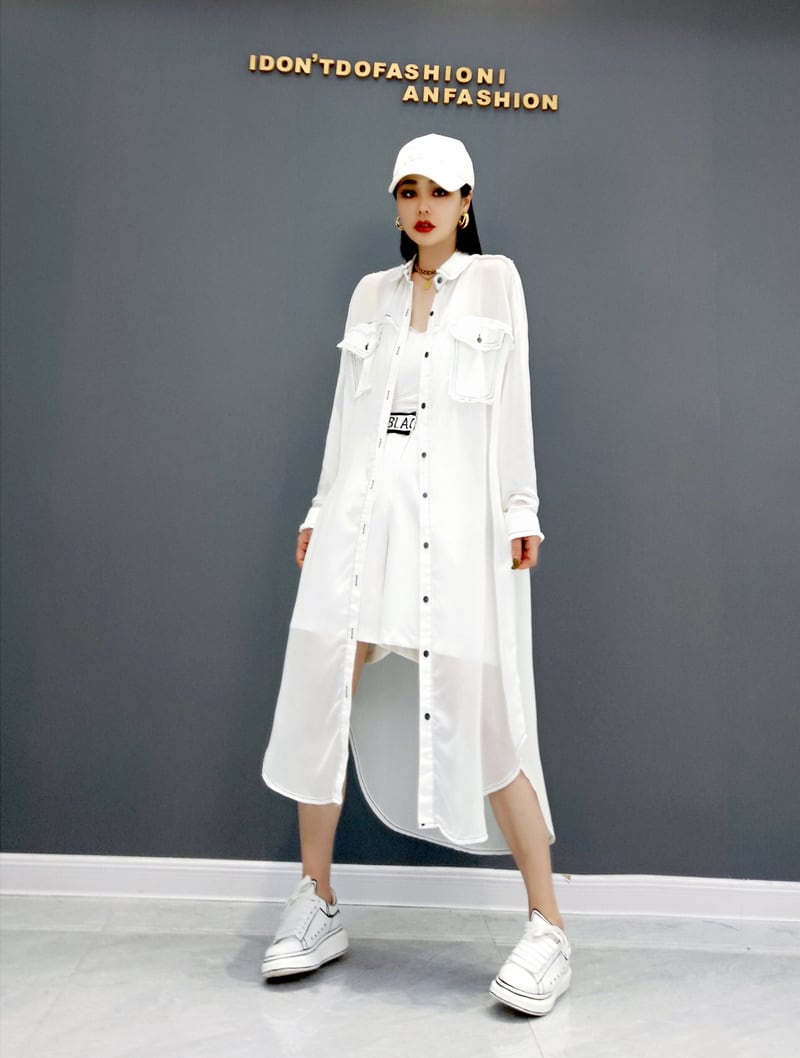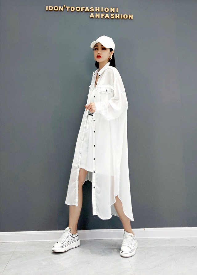 軽い生地でできたロング丈シャツワンピース。