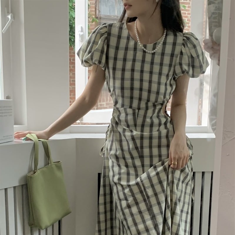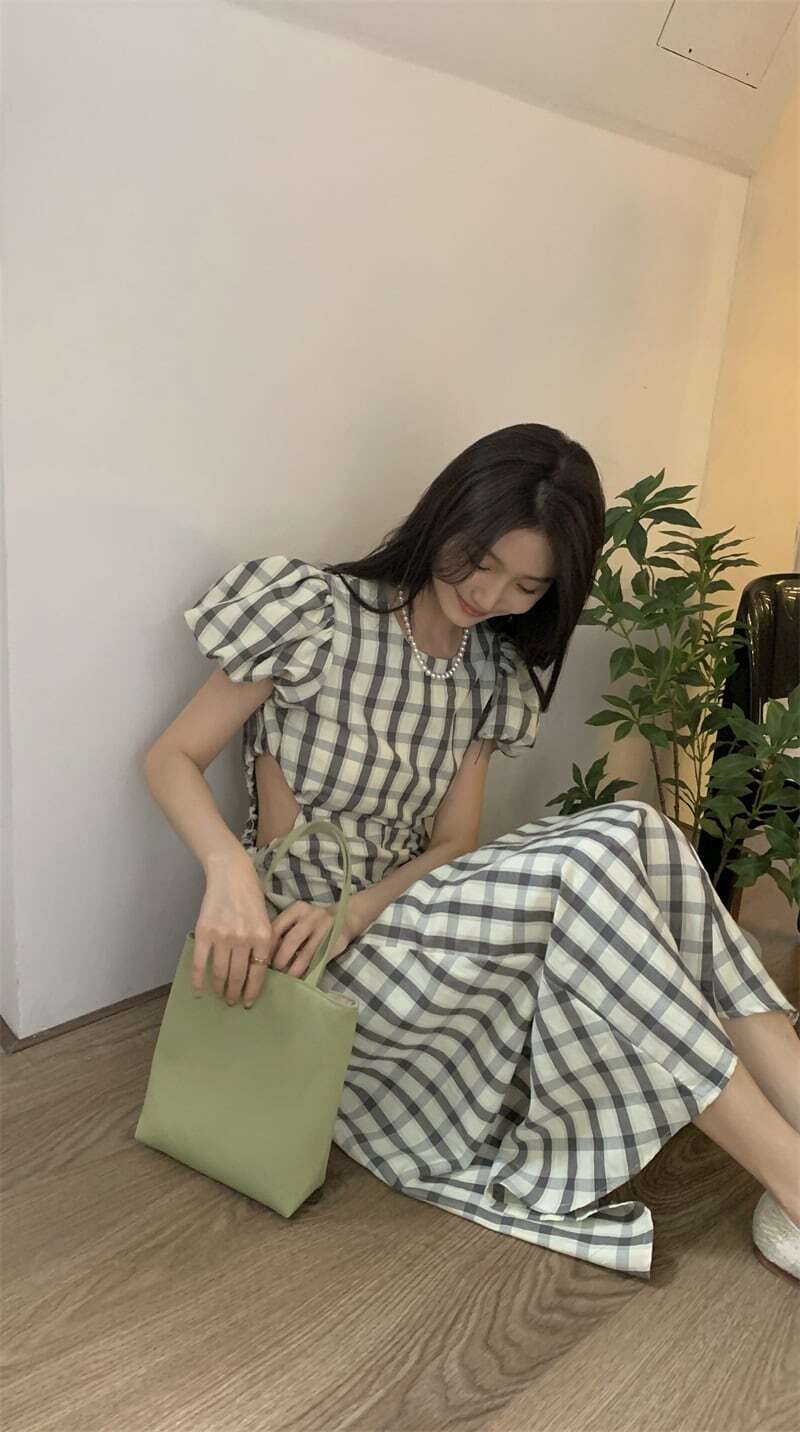 【送料無料】レディース チェック柄 ウエストカット パフスリーブ ワンピース 大人可愛い ママコーデ ママファッション 韓国系 オルチャン 人気 トレンド 新作 20代 30代 40代 きれいめ レトロ シンプル お出かけ デート おしゃれ 通勤 通学 オフィス OL デイリー 普段着 ラフ カジュアル フェミニン シック ゆったり 体型カバー 着痩せ 着回し インスタ映え 春 夏 CO4073