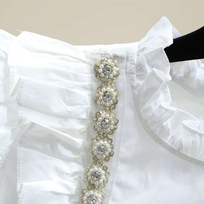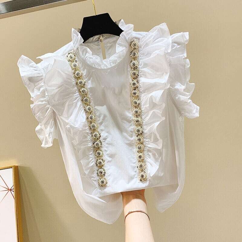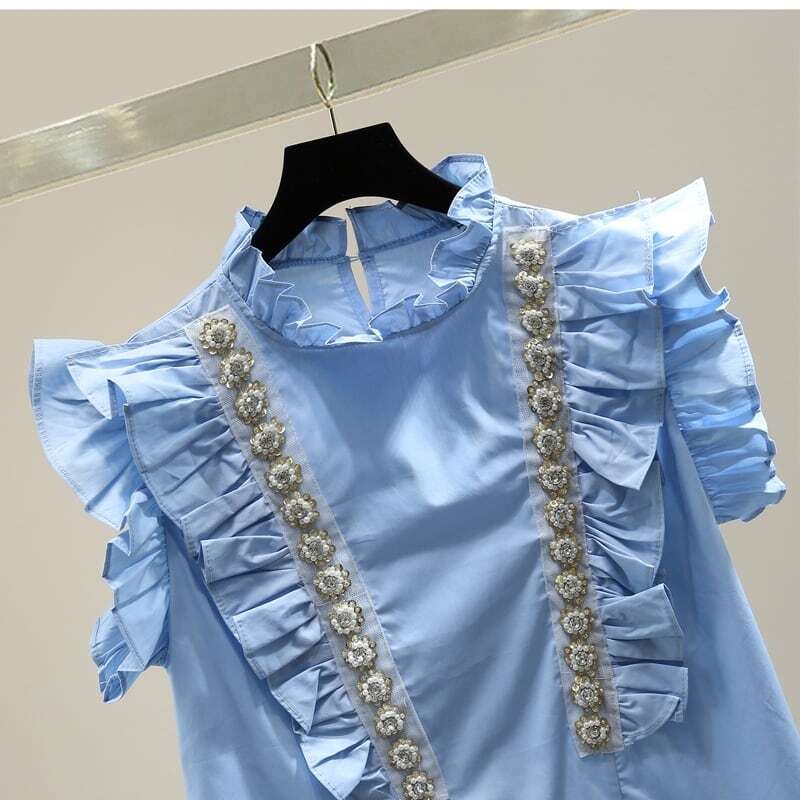 【送料無料】レディース クリスタル ビーズ フリル ブラウス ノースリーブ 大人可愛い ママコーデ ママファッション 韓国系 オルチャン 人気 トレンド 新作 20代 30代 40代 きれいめ レトロ シンプル お出かけ デート おしゃれ 通勤 通学 オフィス OL デイリー 普段着 ラフ カジュアル フェミニン シック ゆったり 体型カバー 着痩せ 着回し インスタ映え 春 夏 CO4076