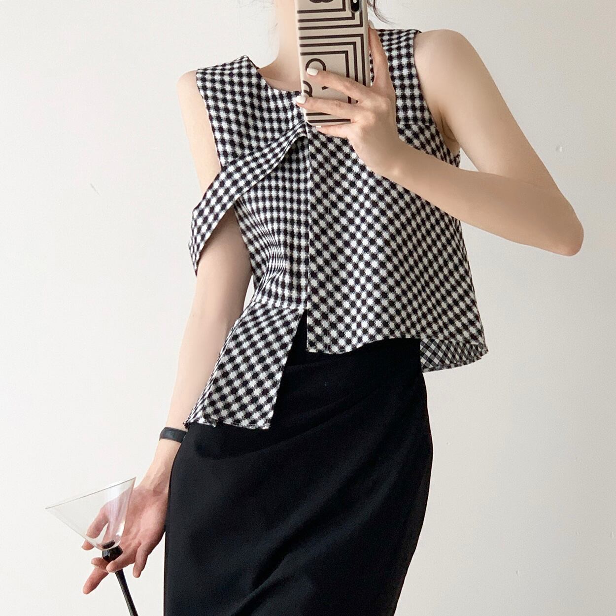 【送料無料】レディース チェック柄 ノースリーブ アシンメトリー トップス 大人可愛い ママコーデ ママファッション 韓国系 オルチャン 人気 トレンド 新作 20代 30代 40代 きれいめ レトロ シンプル お出かけ デート おしゃれ 通勤 通学 オフィス OL デイリー 普段着 ラフ カジュアル フェミニン シック ゆったり 体型カバー 着痩せ 着回し インスタ映え 春 夏 CO4081