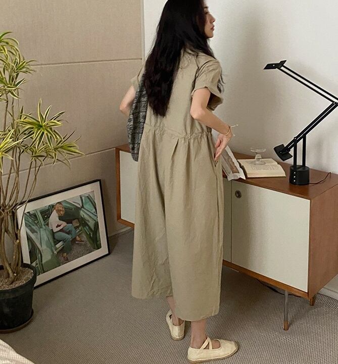 【送料無料】レディース ジャンプスーツ カーキ オールインワン ウエストドロスト ハーフボタン ロング丈 半袖 大人可愛い ママコーデ ママファッション 韓国系 オルチャン 人気 トレンド 新作 20代 30代 40代 きれいめ レトロ シンプル お出かけ デート おしゃれ 通勤 通学 オフィス OL デイリー 普段着 ラフ カジュアル フェミニン シック ゆったり 体型カバー 着痩せ 着回し インスタ映え 春 夏 CO4093