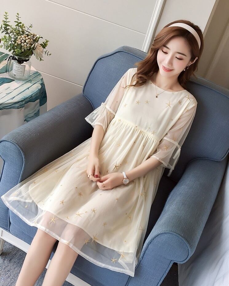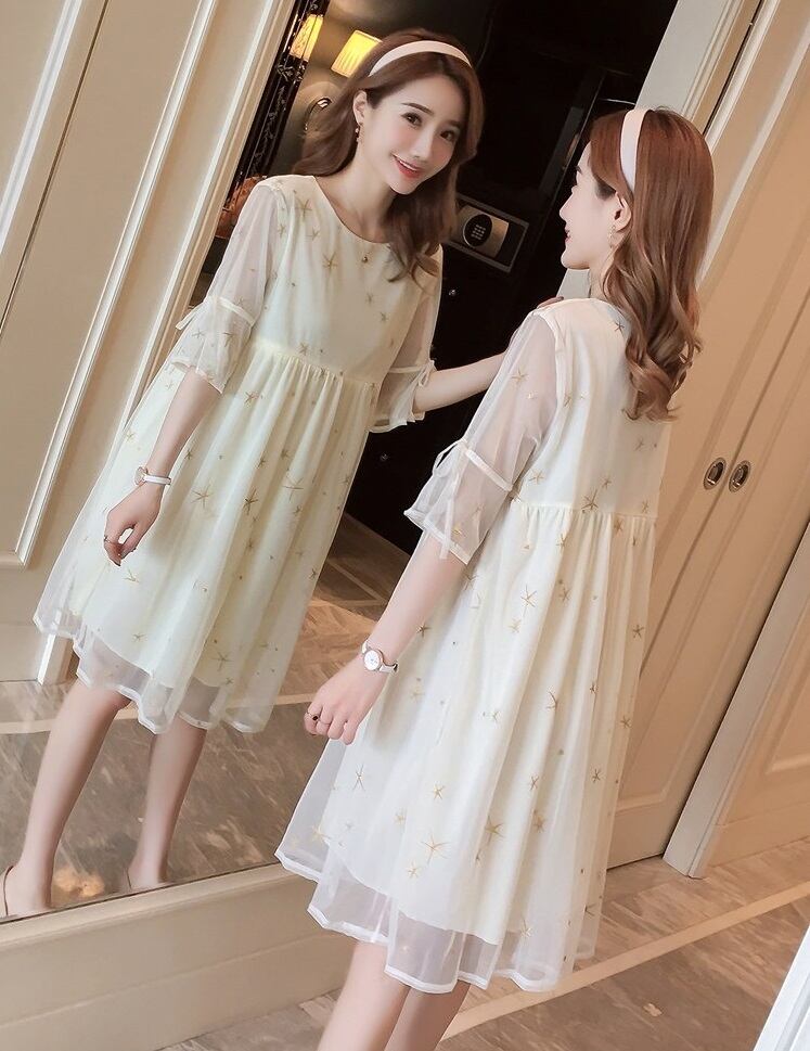 【送料無料】マタニティ ワンピース 授乳口付き ひざ丈 シフォン 星柄 シースルー 透け感 レディース 可愛い ママコーデ ママファッション ママ服 マタニティウェア 人気 ゆったり 大きいサイズ デイリー 普段着 お出かけ おしゃれ シンプル 無地 きれいめ カジュアル フェミニン シック 体型カバー 着痩せ 着回し お宮参り マタニティフォト 通勤 妊婦服 産前 産後 春 夏 CO4121