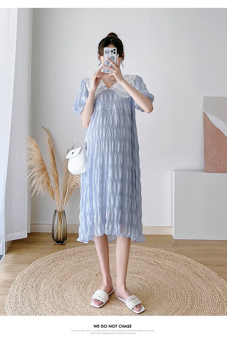 【送料無料】マタニティ レース襟 ワンピース Vネック パフスリーブ ワッシャープリーツ しわ加工 レディース 可愛い ママコーデ ママファッション ママ服 マタニティウェア 人気 ゆったり 大きいサイズ デイリー 普段着 お出かけ おしゃれ シンプル 無地 きれいめ カジュアル フェミニン シック 体型カバー 着痩せ 着回し お宮参り マタニティフォト 通勤 妊婦服 産前 産後 春 夏 CO4141