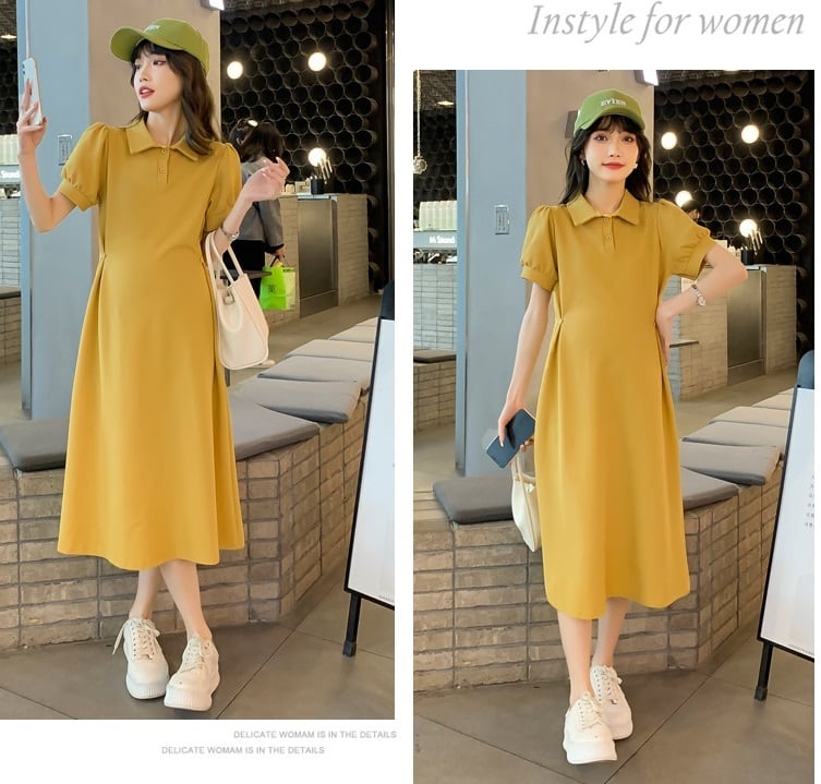 【送料無料】マタニティ ワンピース 襟 Aライン ポロシャツワンピース パフスリーブ フレア レディース 可愛い ママコーデ ママファッション ママ服 マタニティウェア 人気 ゆったり 大きいサイズ デイリー 普段着 お出かけ おしゃれ シンプル 無地 きれいめ カジュアル フェミニン シック 体型カバー 着痩せ 着回し お宮参り マタニティフォト 通勤 妊婦服 産前 産後 春 夏 CO4156