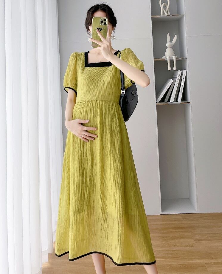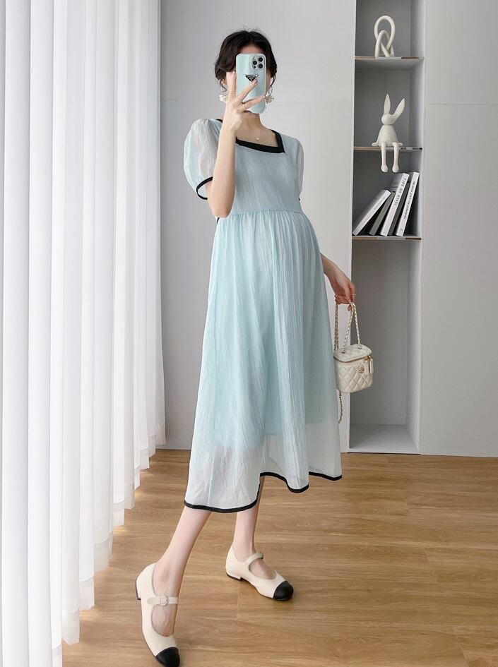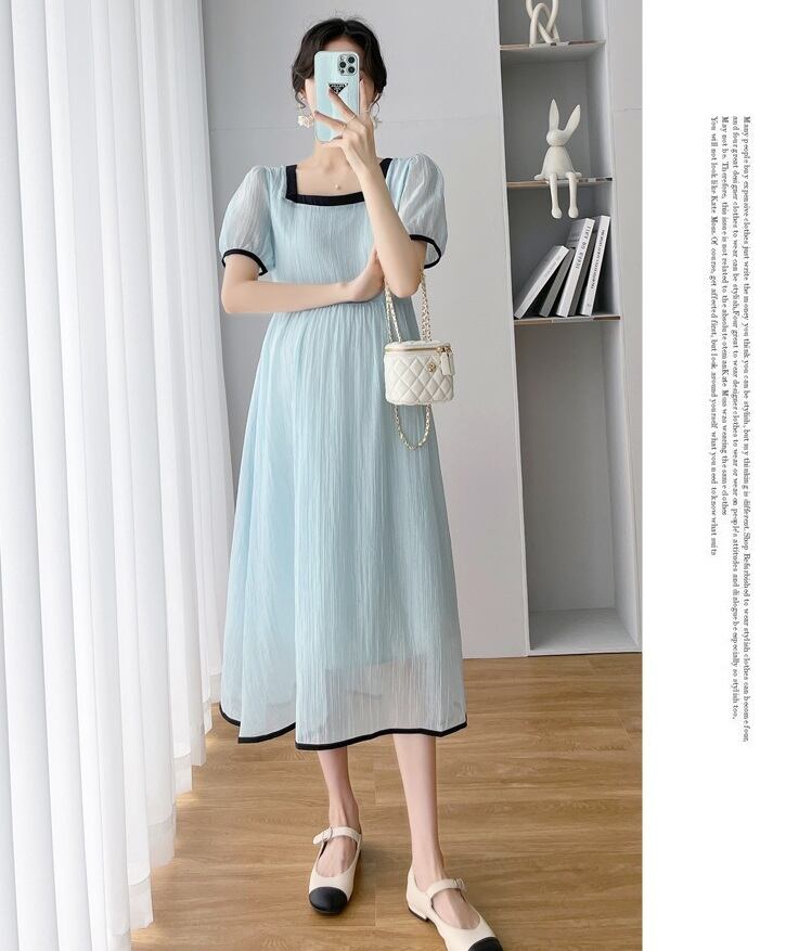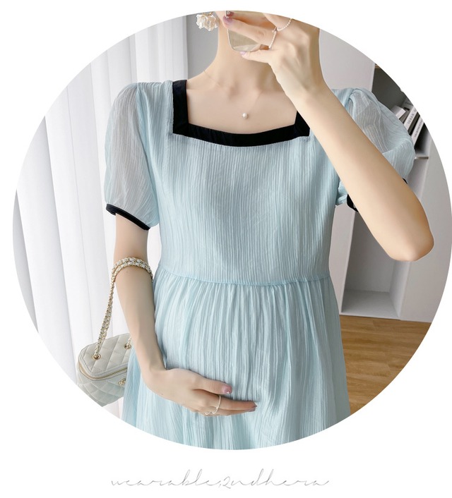 【日本未発売/送料無料】マタニティ ワンピース スクエアネック パイピング 半袖 バイカラー Aライン しわ加工 レディース 可愛い ママコーデ ママファッション ママ服 マタニティウェア 人気 ゆったり 大きいサイズ デイリー 普段着 お出かけ おしゃれ シンプル 無地 きれいめ カジュアル フェミニン シック 体型カバー 着痩せ 着回し お宮参り マタニティフォト 通勤 妊婦服 産前 産後 春 夏 CO4163