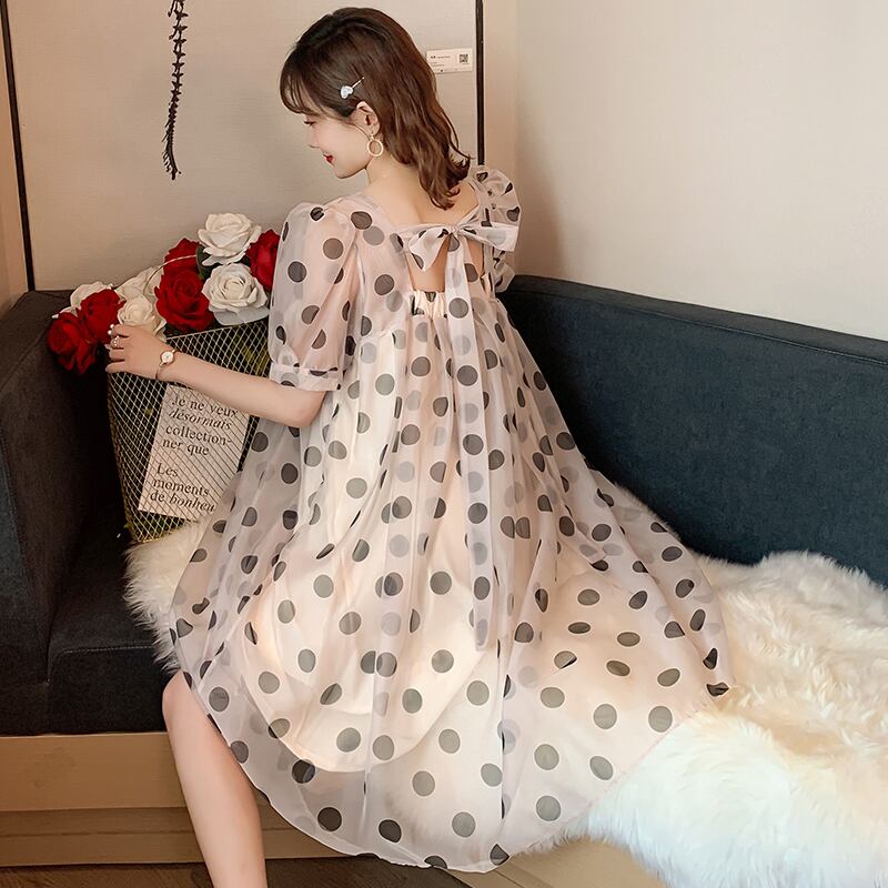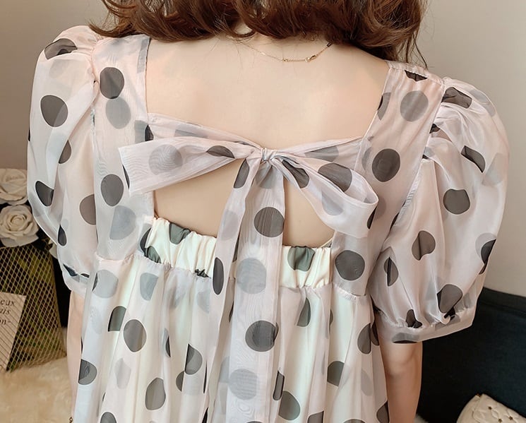 【送料無料】マタニティ ワンピース ミディ丈 シフォン ドット スクエアネック パフスリーブ バックリボン レディース 可愛い ママコーデ ママファッション ママ服 マタニティウェア 人気 ゆったり 大きいサイズ デイリー 普段着 お出かけ おしゃれ シンプル 無地 きれいめ カジュアル フェミニン シック 体型カバー 着痩せ 着回し お宮参り マタニティフォト 通勤 妊婦服 産前 産後 春 夏 CO4165