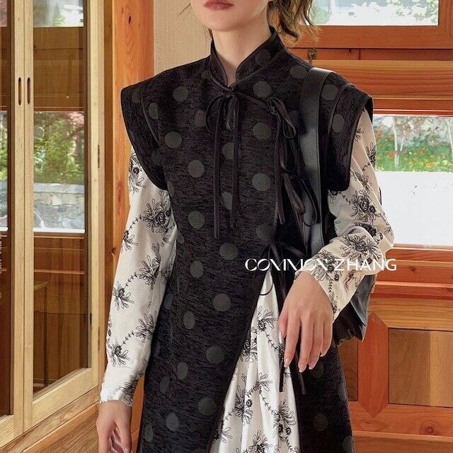 【送料無料】レディース チャイナ風 トップス ワンピース ドット 水玉 ノースリーブ 大人可愛い ママコーデ ママファッション 韓国系 オルチャン 人気 トレンド 新作 20代 30代 40代 きれいめ レトロ シンプル お出かけ デート おしゃれ 通勤 通学 オフィス OL デイリー 普段着 ラフ カジュアル フェミニン シック ゆったり 体型カバー 着痩せ 着回し インスタ映え 春 夏 CO4186