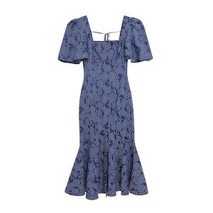 バックコンシャスなデザインで、後ろ姿も決まる花柄ワンピース。