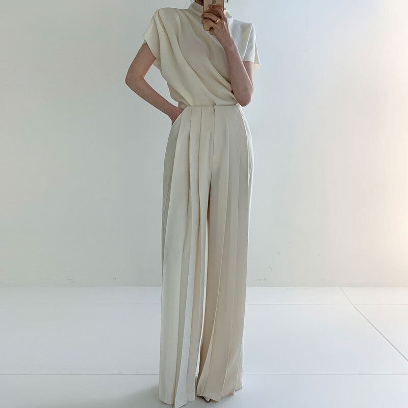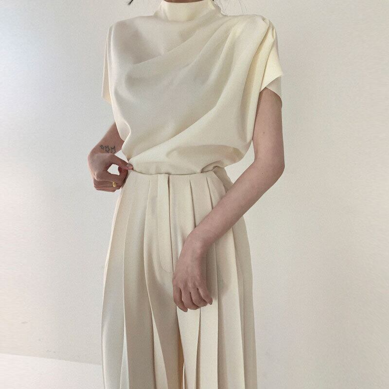 【送料無料】レディース セットアップ ドレープ トップス & プリーツ ワイドパンツ ノースリーブ モックネック 大人可愛い ママコーデ ママファッション 韓国系 オルチャン 人気 トレンド 新作 20代 30代 40代 きれいめ レトロ シンプル お出かけ デート おしゃれ 通勤 通学 オフィス OL デイリー 普段着 ラフ カジュアル フェミニン シック ゆったり 体型カバー 着痩せ 着回し インスタ映え 春 夏 CO4196